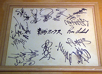 南海時代の寄せ書きサイン色紙、野村はじめ門田や広瀬の名前が見える。