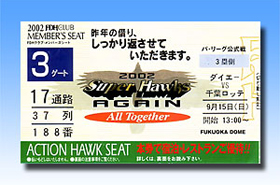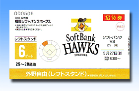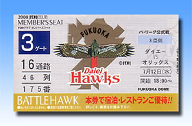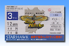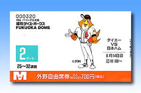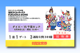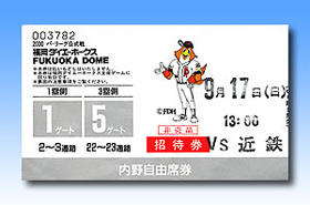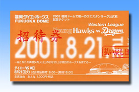 ウェスタン・リーグ公式戦のナイトゲームが初めて福岡ドームで開催された時の招待券。全席自由席。