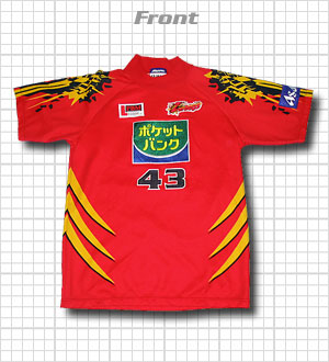 2001年よりスタートしたマスターズリーグの福岡ドンタクズのユニフォーム。九州を本拠地としており、ホークスのOBが最も多く所属するチームです。デザインについてはロマンズには遠く及ばないダザダザで、カラーが赤という点からもホークスとの関連づけが薄く感じます。胸のスポンサーロゴは2001〜2002年はこの「ポケットバンク」。2003〜2004年は「作州商会」。このユフォームの主の岩木選手は、1975年〜1988年に南海ホークスに在籍し、ダイエーになってからは、ブルペン捕手や裏方として活躍しました。背番号43は南海入団時より、8年間つけていた番号です。