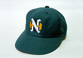 このユニフォームのデザイン変更とともに、帽子も若干変更されました。帽子のNHマークの「H」の部分がオレンジ色に変更されたのです。NとHの色が別々で2色になったのは、南海ホークスの歴史上このときのデザインのみです。(のち、野村監督時代に色つきのNHマークになりますが、あのときはNHとも黄土色の1色のみです。)この帽子もまた、ゲンの悪いユニフォームとともに1年間で姿を消してしまいます。余談ですが阪神タイガースが帽子のTHマークのHを1972年から黄色にしました。もしかするとこの帽子のイメージを真似たのかも知れませんね。 |