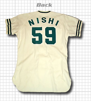 今回の提供元の土佐武さんは、このモデルのユニフォームを多数所蔵しておられます。コーチ陣を始め、河埜・岸川・山内ら数十点をお店に展示されてますが、なぜ西選手のものを使わさせていただいたかといいますと、最もきれいな状態のユニフォームだったからです。