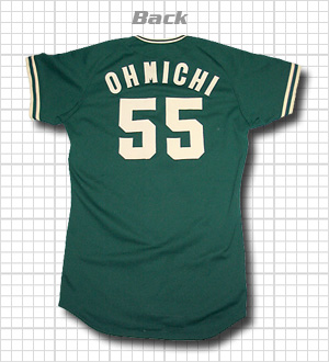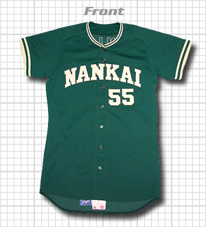 1988年の南海ホークス最後のモデル。そして最後の南海戦士のひとり大道選手の最初で最後の南海ユニフォームです。デザイン等は1986年版の山本和範選手のユニフォームと変わりませんが、コチラはセミプルオーバーではなく、前開き式のユニフォームです。