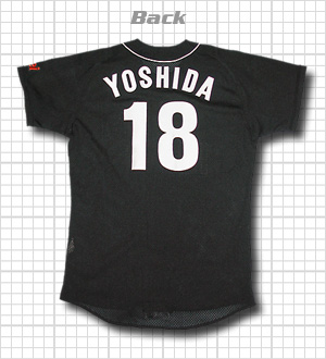 1998年のモデル。これも最後の南海戦士の一人・吉田豊彦投手(現・楽天:2005年現在)のホークス在籍時最後のユニフォームです。吉田豊彦といえば、南海入団以来の背番号11が印象に残っていますが、同期入団の村田勝喜とトレードで西武から来た渡辺智男が1998年再び西武に戻り、空いたエースナンバーを背負う事になりました。しかし、皮肉な事に「18」に変更したシーズン途中、5月に阪神タイガースへトレードされしまいました。実質1ヶ月余りという短命な背番号18時代の貴重なユニフォームです。背番号18はエースナンバーでありながら、南海時代の山内和宏から4人連続でトレードという結果になりました。