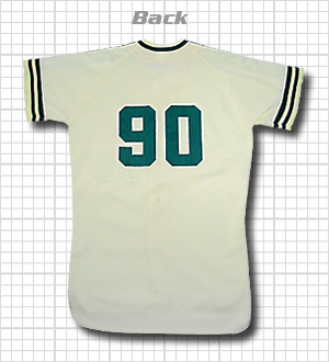 このユニフォームには、今も後悔の念があります。当時学生だったボクには壱萬円という価格は、高嶺の花で夏休みの大阪への帰郷とき購入をためらってしまったのです。正月の帰郷のときには買うゾとココロに決めていたのですが、そのときには球団ごと無くなっていました…。
