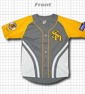 2007年7月24日〜26日も3日間限定で着用したサードユニフォームのレプリカバージョンで、2007年「鷹の祭典」の配布品。2006年版のデザインに驚いたが、このデザインには度肝抜かれた。脇から腰にかけてのラインというか切り返しは何?ウルトラマンシリーズに登場する科特隊などの地球軍の制服みたいなデザイン。またユニフォーム意匠学家の綱島理友氏の言葉を借りれば、黄色にグレーはありえない組み合わせとのこと。デザインコンセプトは「絆」らしいが、あんまり伝わってこない。2006年版も何じゃコレと思ったが、このユニフォームを見た後ならカッコ良くも見えてくる。胸マークを「Sh」だけにしたのは評価できる。通常は、背番号、背ネームは入らないが、2006年バージョン同様に「